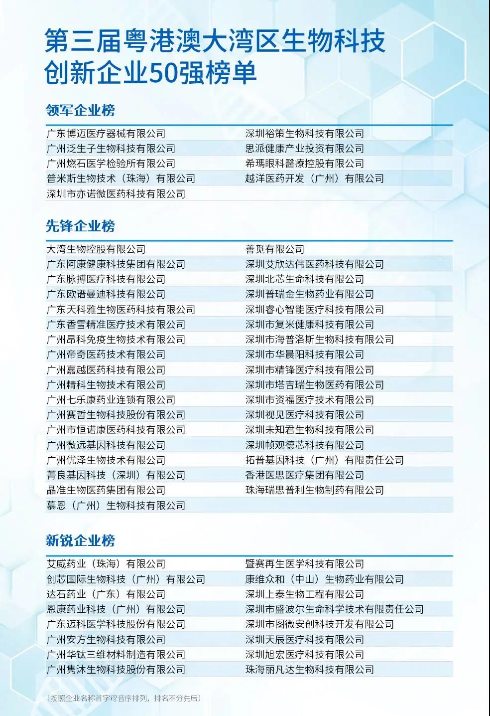 天科雅生物榮登第三屆粵港澳大灣區(qū)生物科技企業(yè)50強(qiáng)榜單
