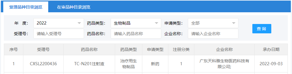 天科雅生物TC-N201注射液”臨床試驗(yàn)申請(qǐng)于近日提交,93日據(jù)CDE官網(wǎng)顯示,“TC-N201注射液”臨床試驗(yàn)申請(qǐng)獲得受理。
