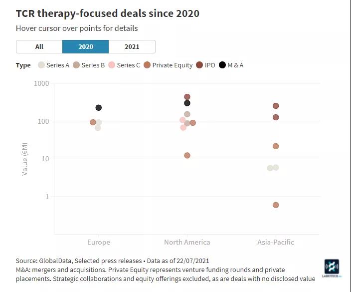 此外,瑞典公司Anocca在B輪融資中籌集了4000萬歐元,該公司將利用所得款項將其TCR療法候選藥物用于一系列實體瘤的1/2a期試驗。這表明TCR領(lǐng)域在歐洲開始受到關(guān)注。