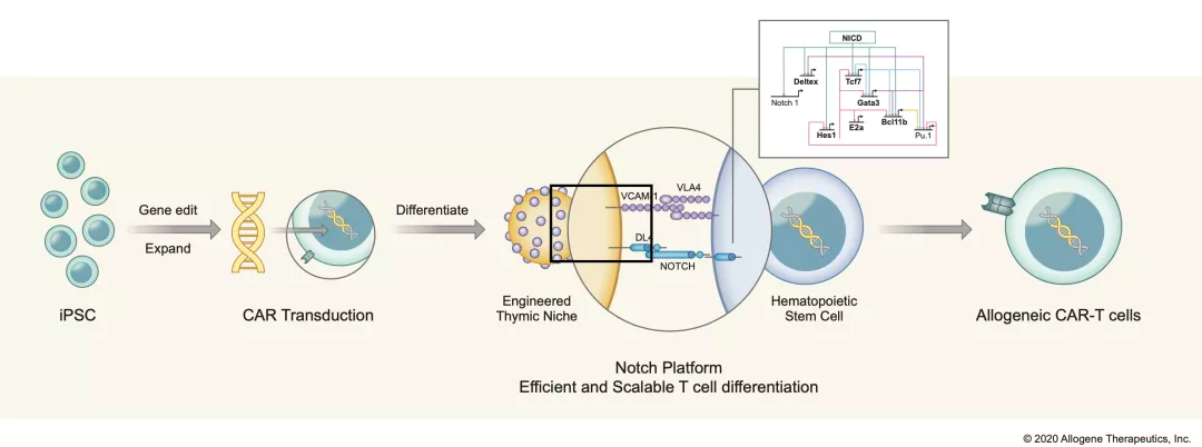 利用來(lái)自于Notch的專有iPSCs平臺(tái)進(jìn)行成熟T細(xì)胞和CAR-T工程細(xì)胞的生產(chǎn)。